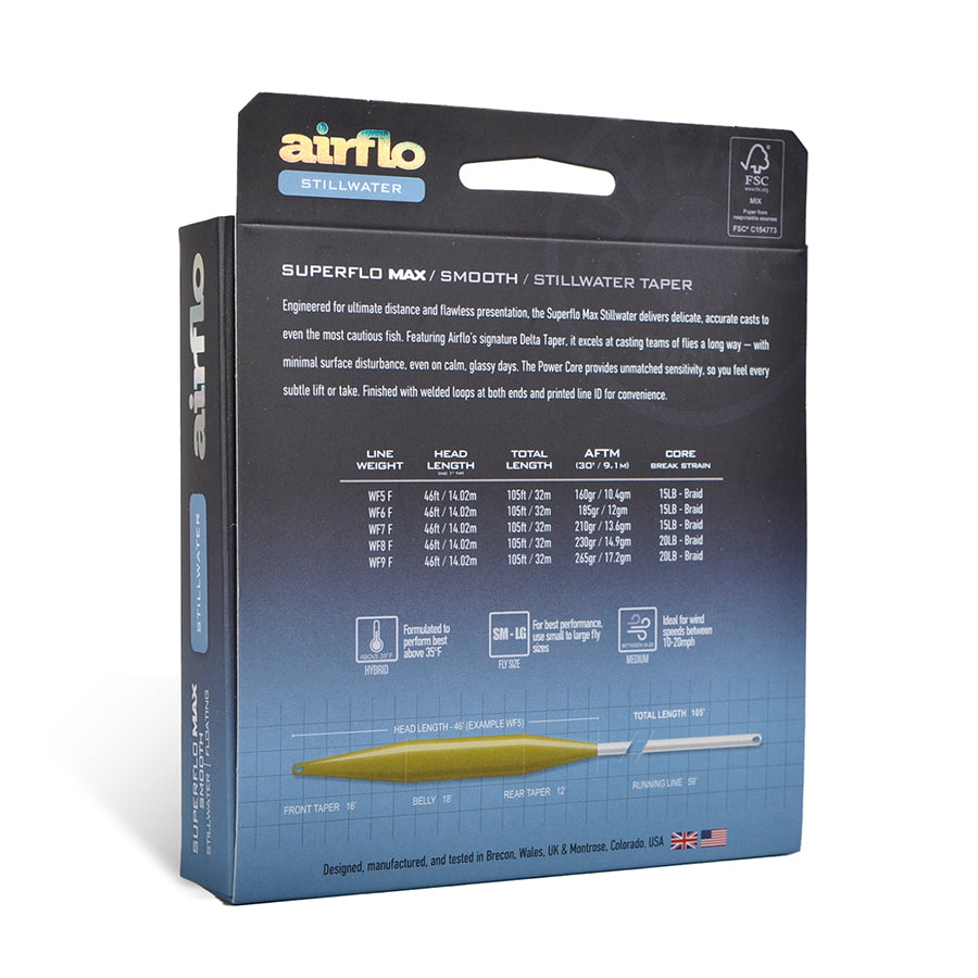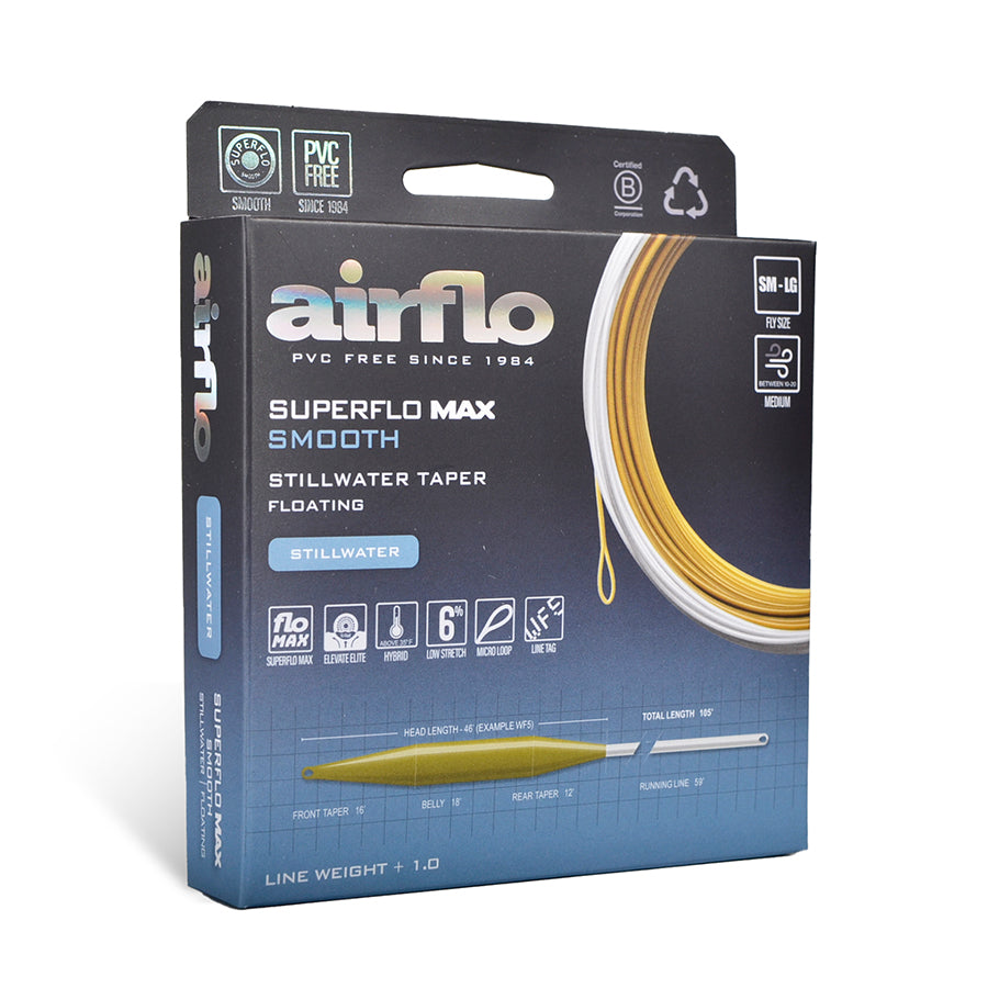 Designed for optimum distance without sacrificing presentation, the Superflo Max Stillwater is the ultimate taper for presenting your flies delicately to those fish that think they’re safe and out of reach. The Stillwater's Power Core is essential for feeling the slightest line lift, no matter how far out there your flies may be. Looped at both ends and printed.