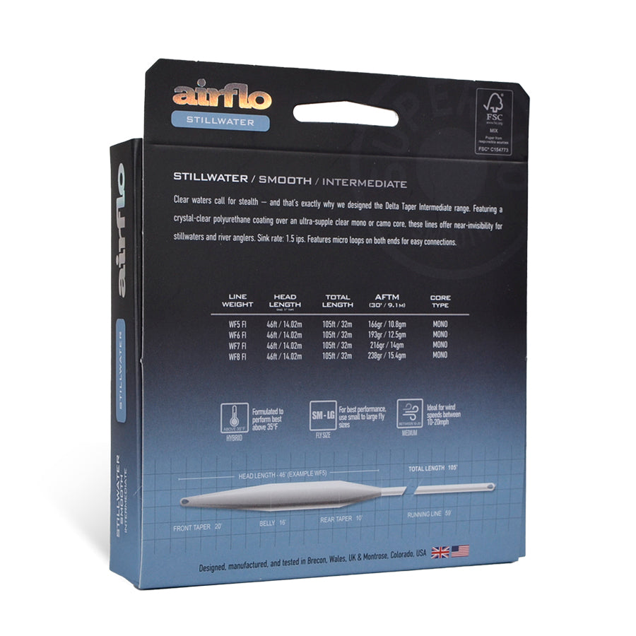 Clear waters call for stealth — and that’s exactly why we designed the Delta Taper Intermediate range. Featuring a crystal-clear polyurethane coating over an ultra-supple clear mono core, or camo core, these lines offers near-invisibility for stillwaters and river anglers. Sink rate: 1.5 ips. Features micro loops on both ends for easy connections.
