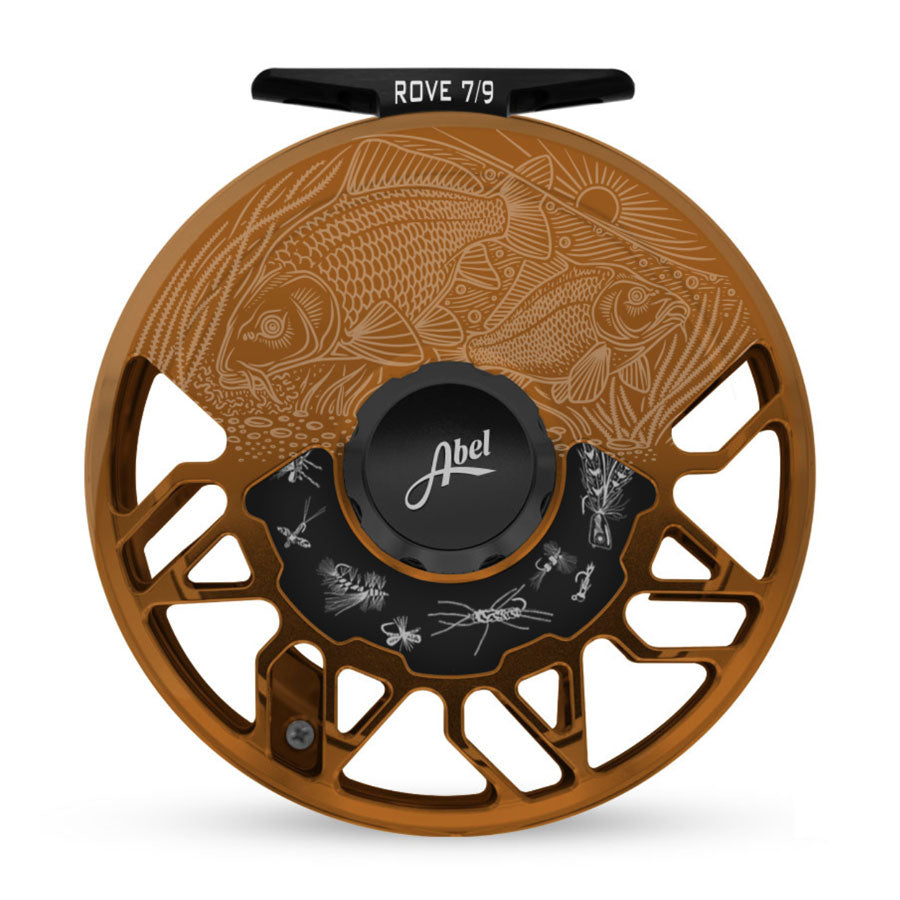 Last year, Casey produced six custom designs exclusively for Abel Reels that quickly became top sellers in our custom finish lineup. Our team of artists developed a process for a first-of-their-kind finish that integrates Casey's laser engraved artwork into an anodized reel. Originally only available in our high gloss solid color finishes, they can now also be additionally ordered in all satin finish solid colors. Three more designs coming in March of 2022 specifically for the ROVE reel.