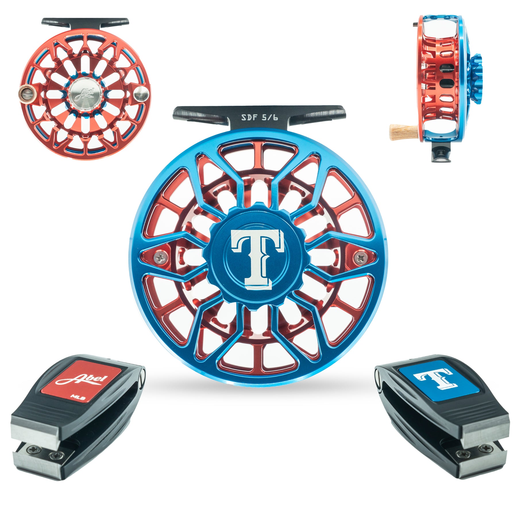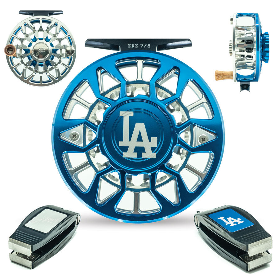 Frame and spool each anodized in a different custom color to represent the specified MLB team