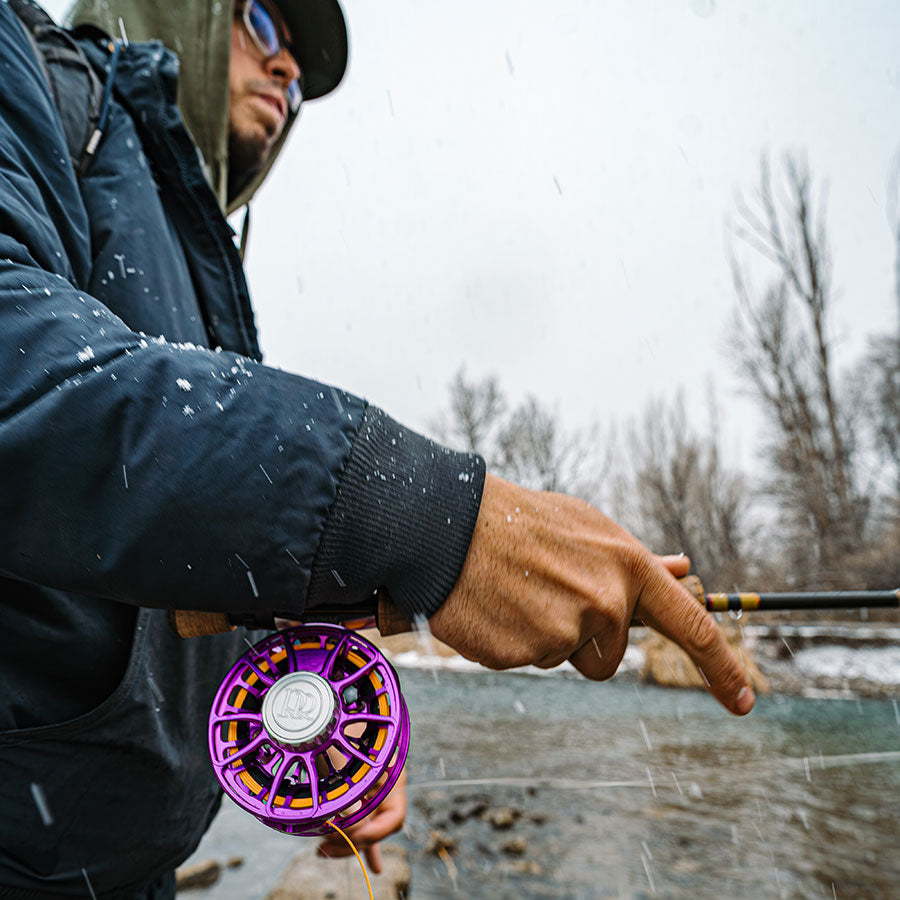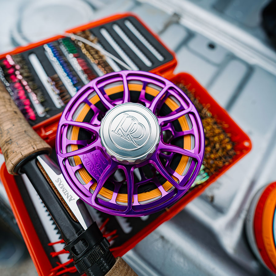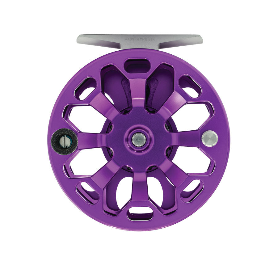 Inspired by late-day shadows on alpine lakes and the glow of a purple haze, this reel’s got just the right amount of flash with deep violet and platinum components.